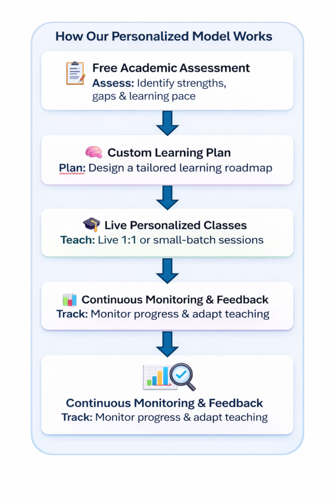 A: Absolutely. We regularly review progress and make adjustments to ensure your learning experience remains aligned with your evolving goals.We offer 1:1 sessions and small batches, depending on the student’s needs and learning level.